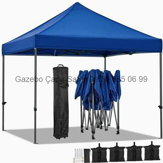 Mavi gazebo çadır modeli en çok tercih edilen renklerden birisidir. Fuarlarda firma logosu baskısı ile reklamı , düğün organizasyonlarında açık alan kullanımını arttırmayı hedefler.